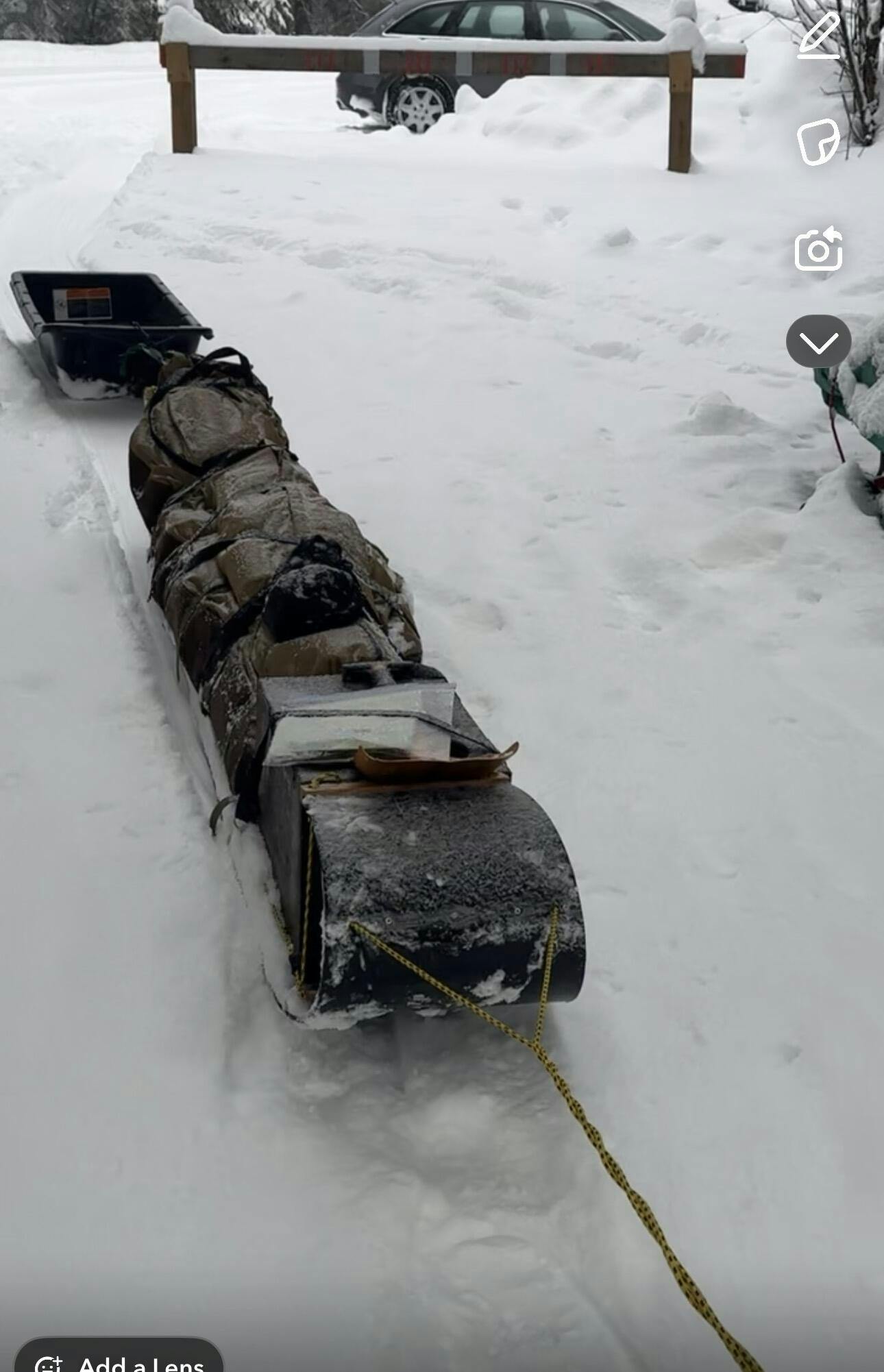 A fully assembled and rigged trail (freight) toboggan, ready to haul your load right out of the box!