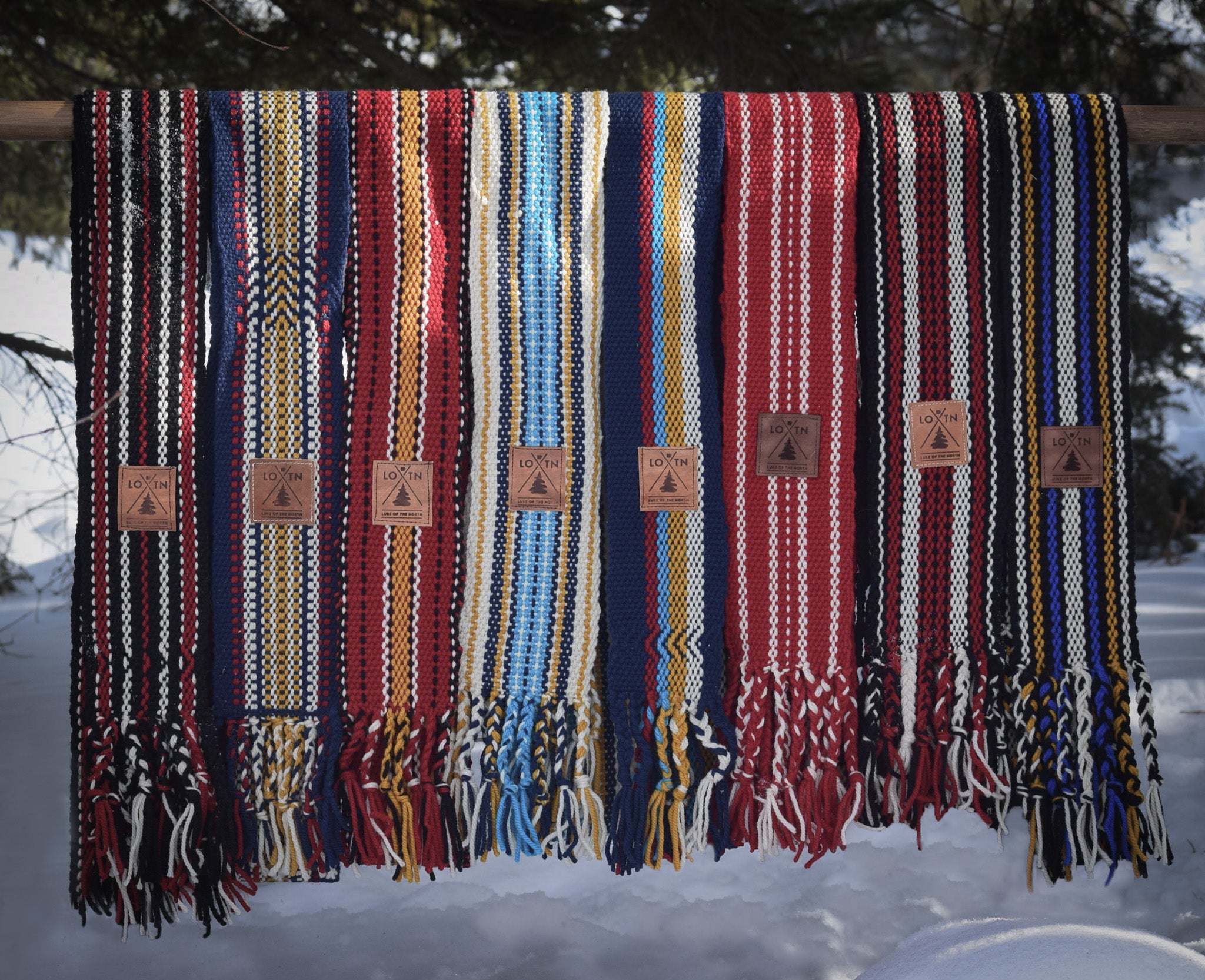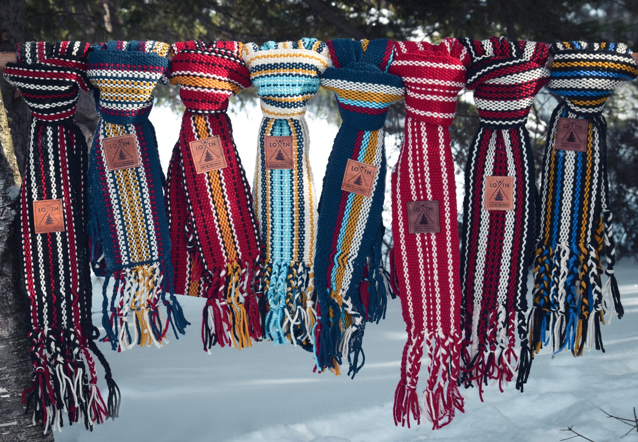 Just like us, no two sashes are alike! Our sashes are made with 100% wool yarn by the creative hand of a local Manitoulin Island artisan. The colour combinations are inspired by our most popular anorak trims, but the sash patterns emerge from the spirit of the moment.